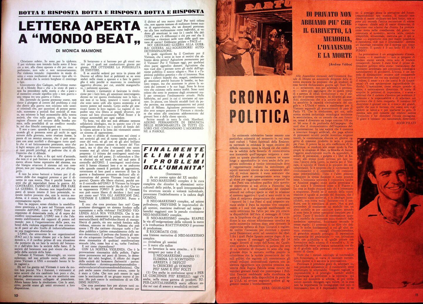 Mondo Beat è stata la prima rivista underground a nascere in Italia durante gli anni Sessanta, attiva dal 1966 al 1967. Al tempo fu considerata la pubblicazione di riferimento per la controcultura giovanile in Italia. Di seguito viene proposta la scansione integrale del secondo numero, pubblicato in data 15 marzo 1967.